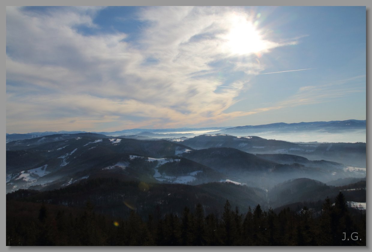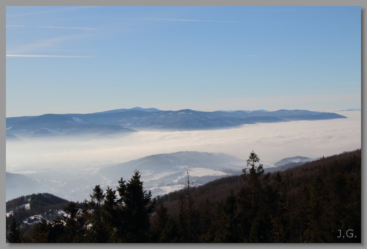 Widać też Jeseniki z Pradziadem po prawej. Odległość 120 km. |