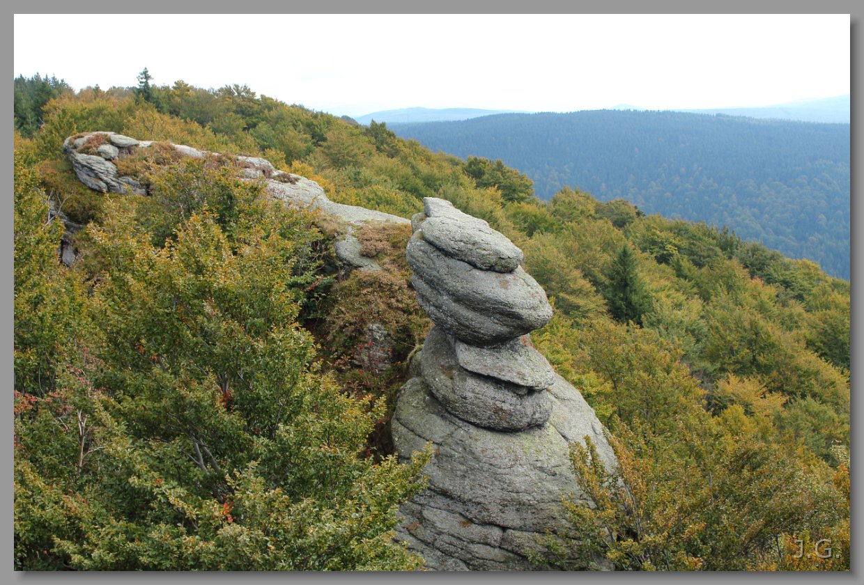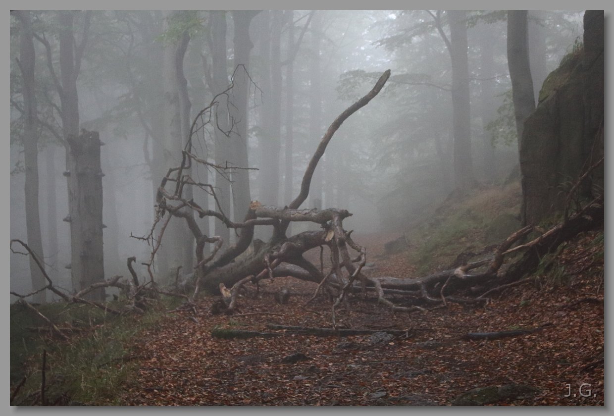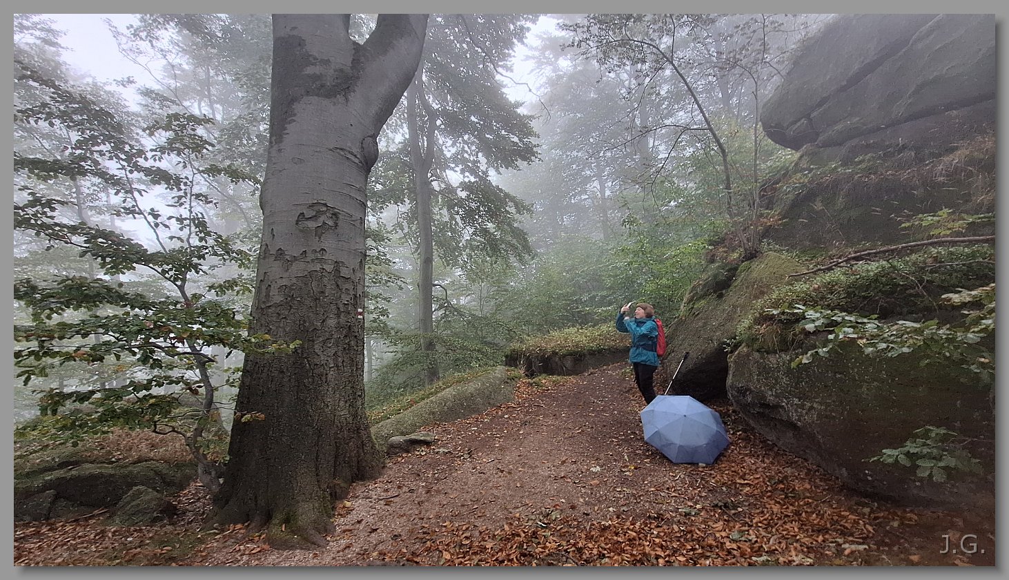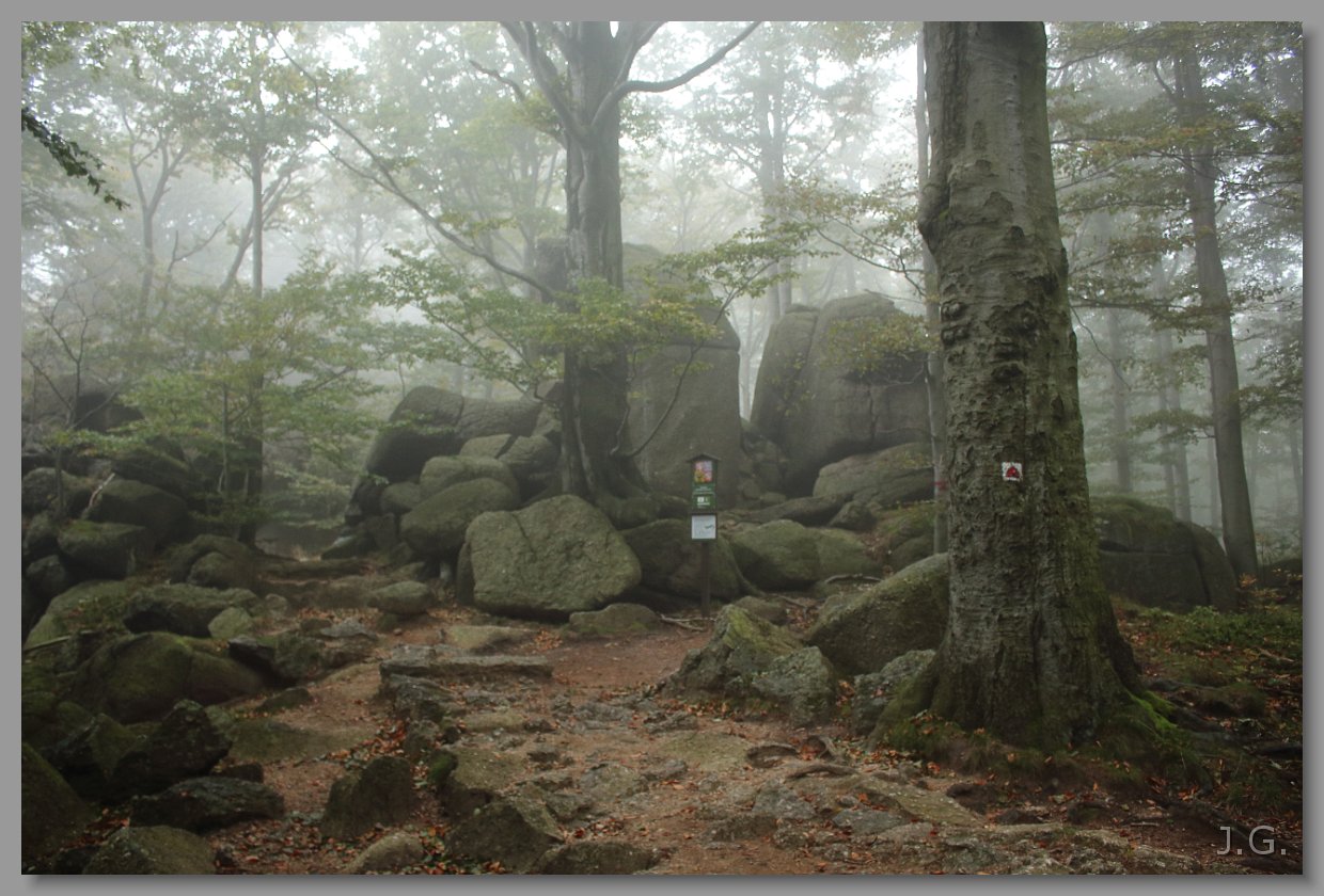 I znów mijamy skały i głazy rozrzucone w bukowym lesie. |