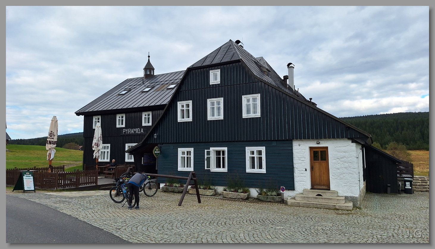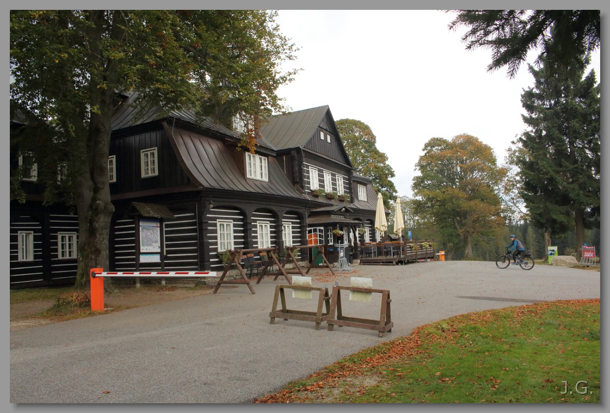 Skwar zelżał, więc jedziemy się ogrzać na Novą Loukę. W zameczku myśliwskim znajduje się restauracja Šámalova chata. |