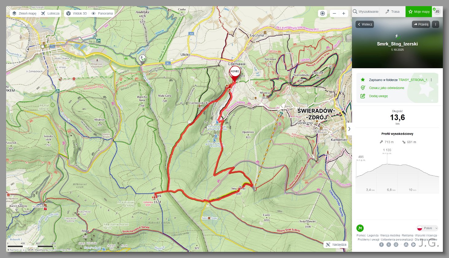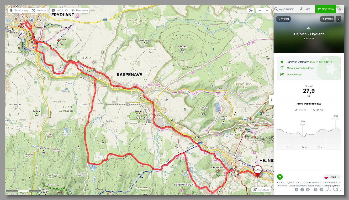 W piątek pogoda ma się utrzymać, więc robimy kolejną nieco dłuższą wycieczkę rowerową - na Jizerkę. |