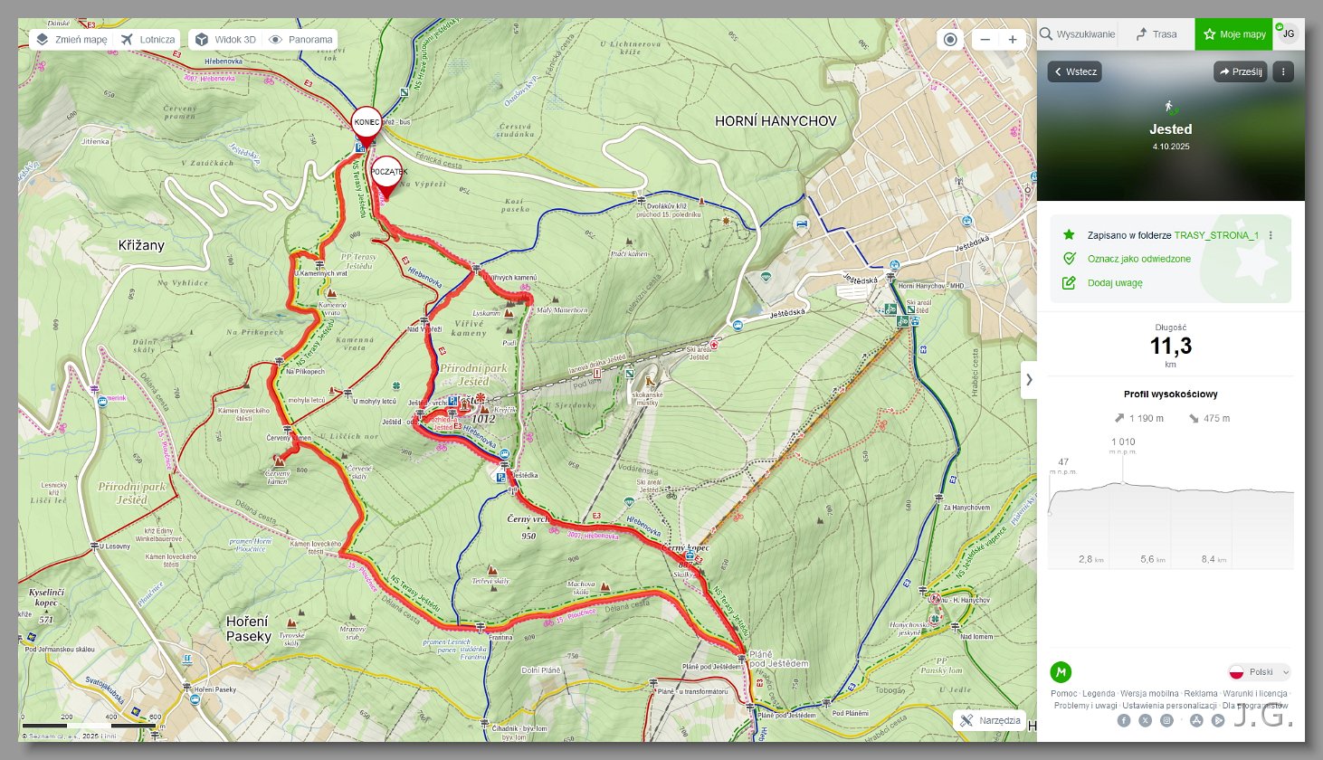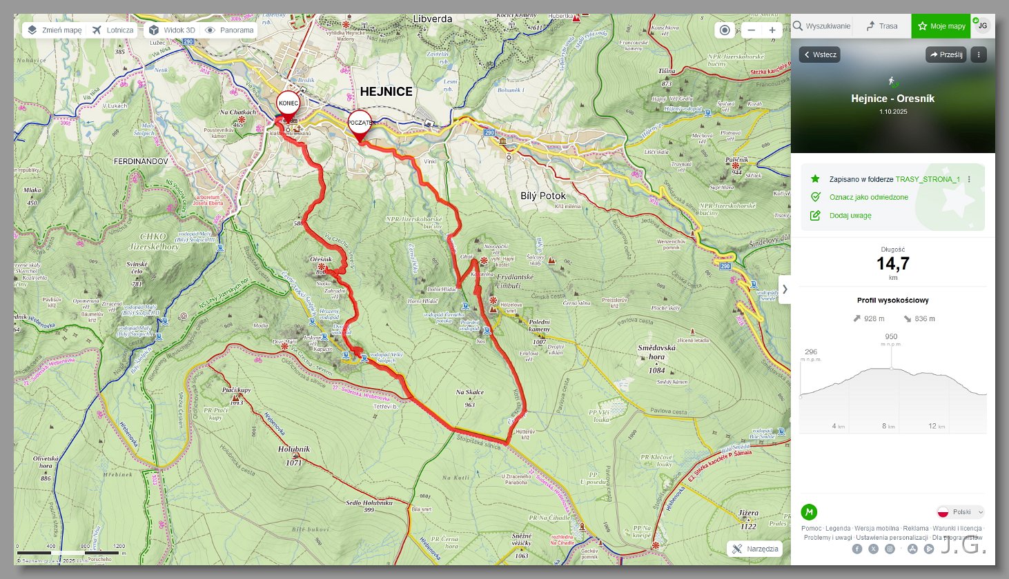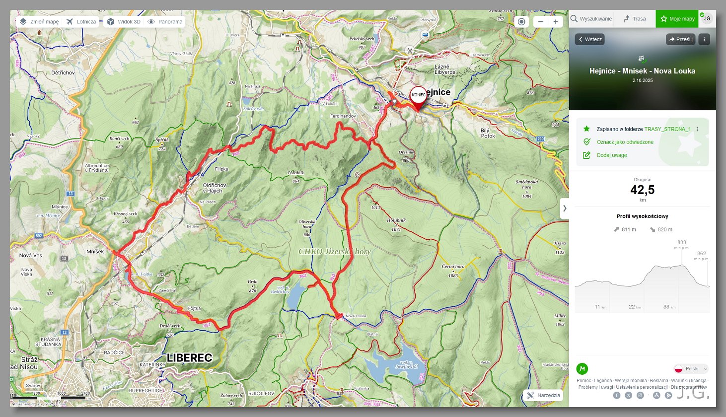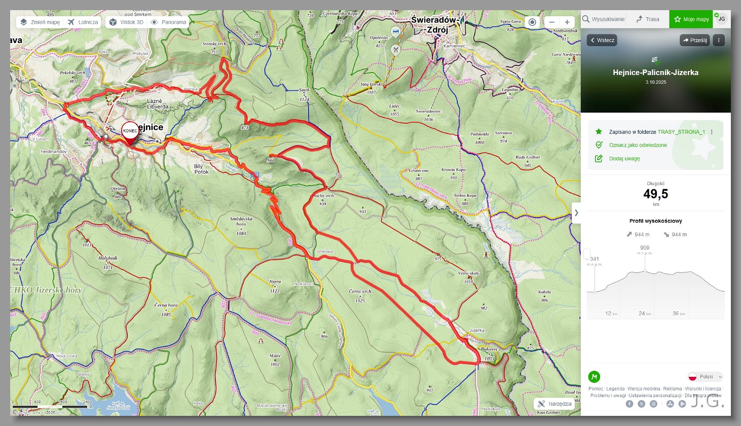 Od Smědavy zjeżdżamy do Hejnic drogą. Trasa wycieczki - było 48 km i 970 m podjazdów. |