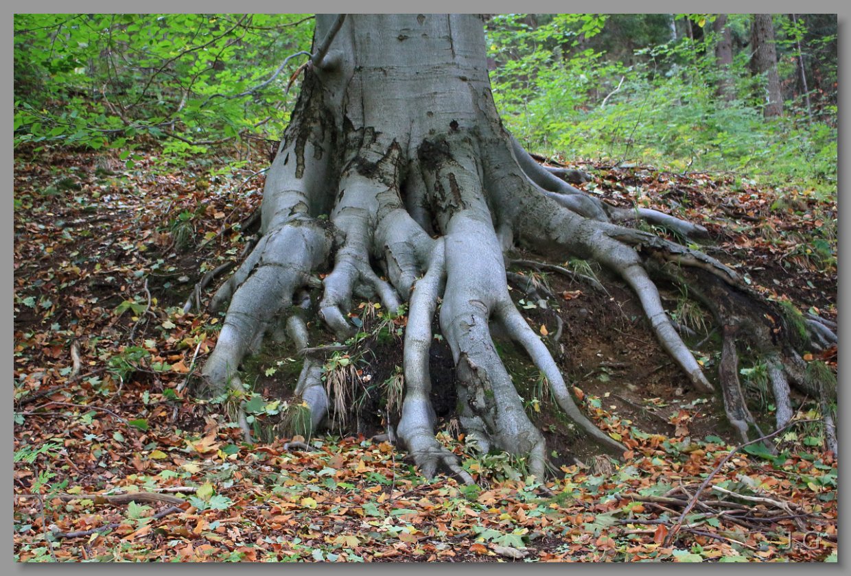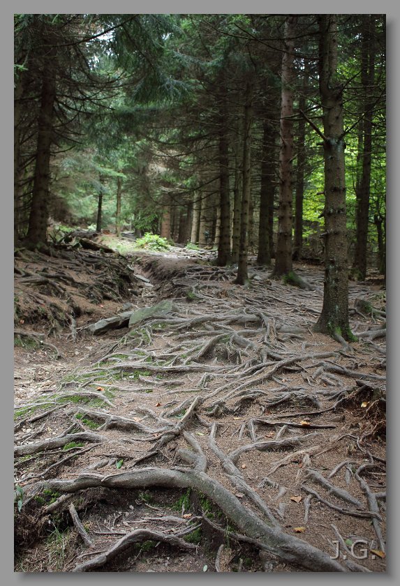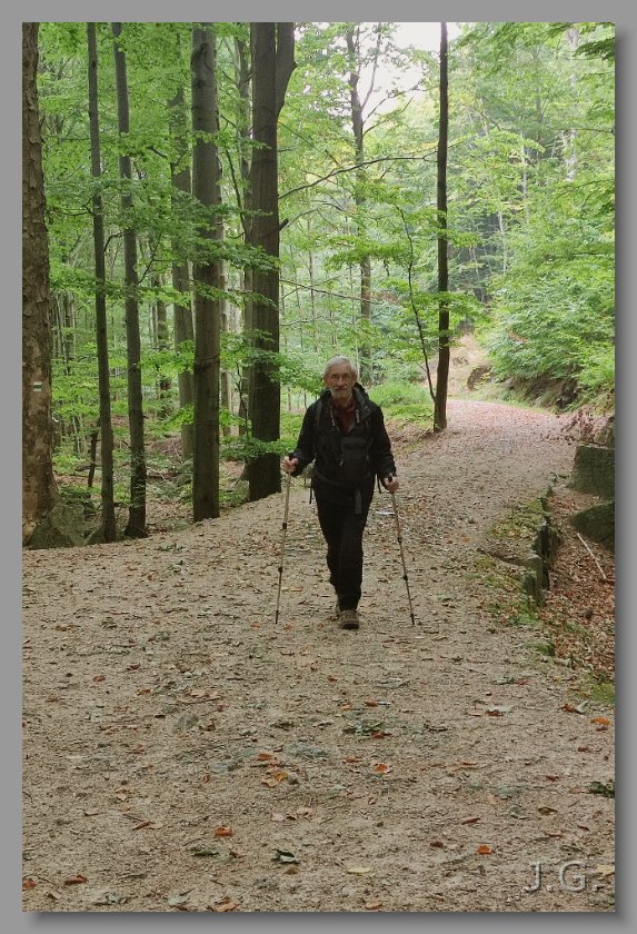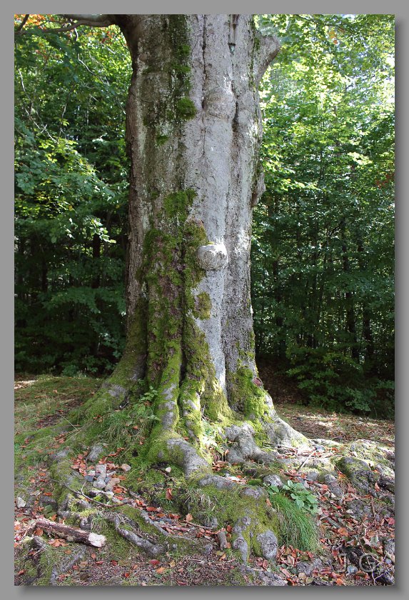Dalej wycinamy nieznakowany zakos drogą, by uniknąć ostrego podjazdu czerwonym pieszym. Tu tez można zaobserwować sporo okazów starych buków ... |
