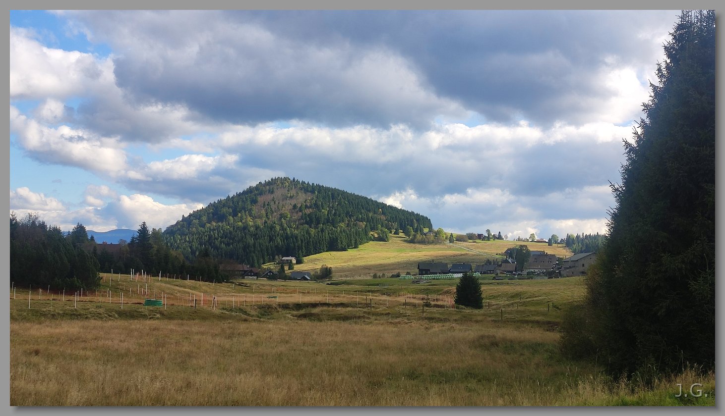 Nad Jizerką wznosi się bazaltowa góra Bukovec (1005 m). Fot. Jola. |