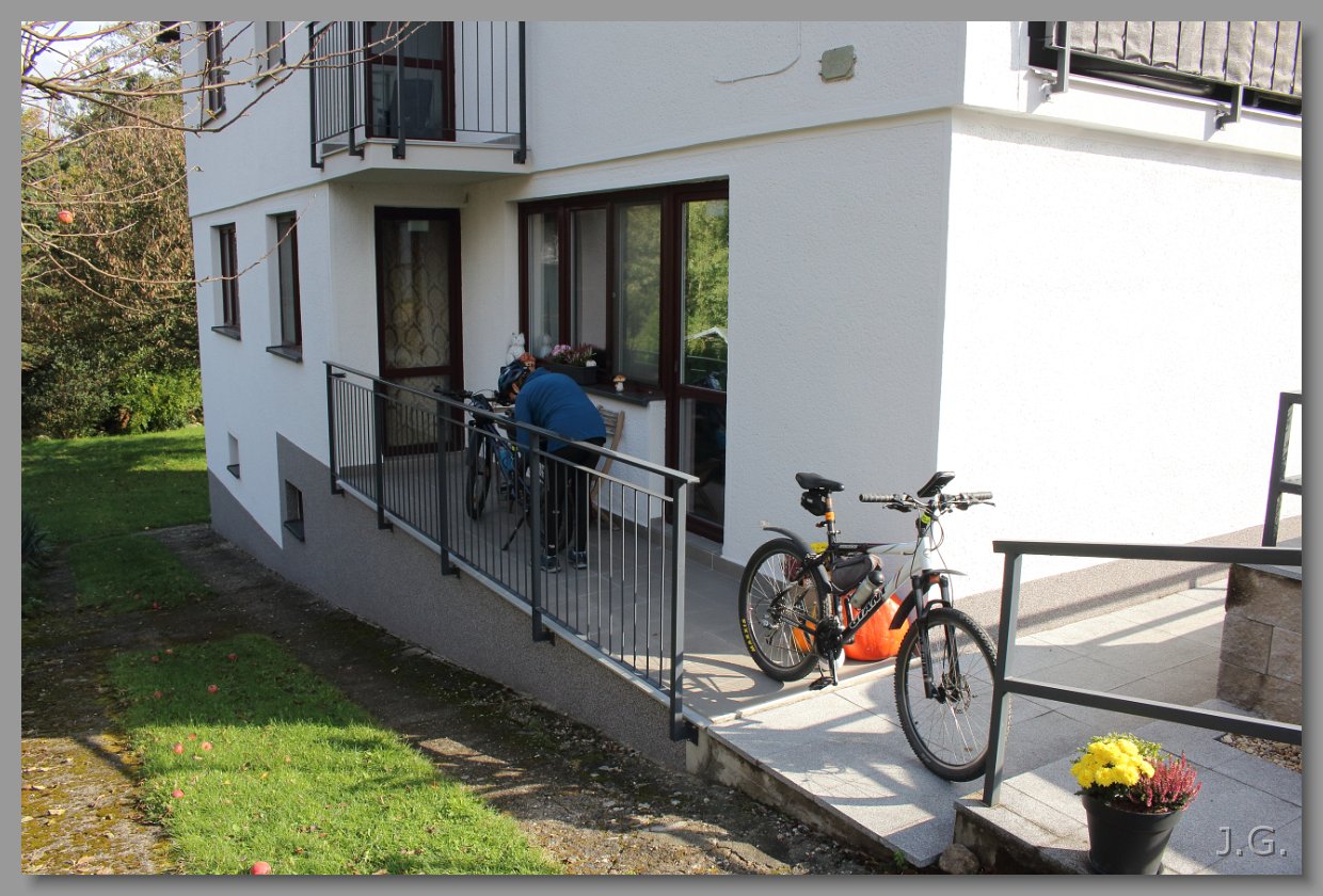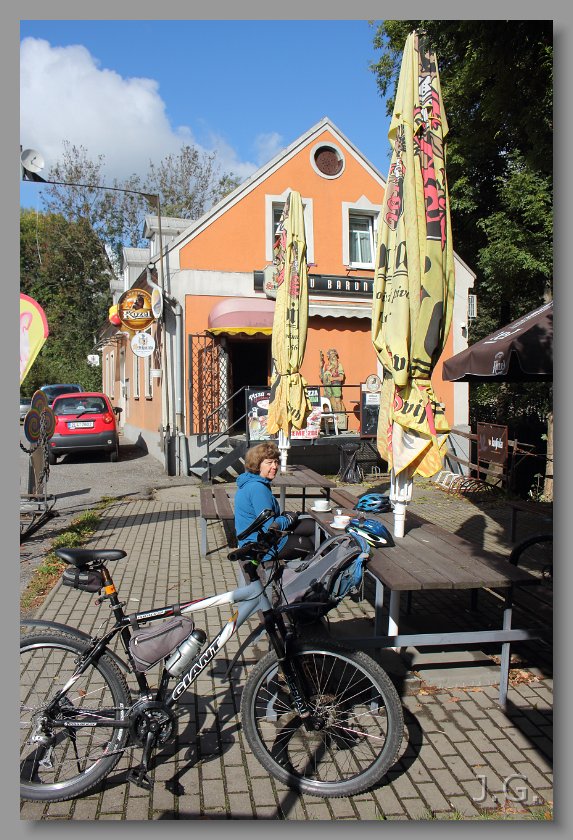 W poniedziałek - ostatni dzień naszego wyjazdu - od rana pada, ale koło południa ma być lepiej, więc postanawiamy zrobić krótką wycieczkę rowerową na kawę do Frydlantu. |