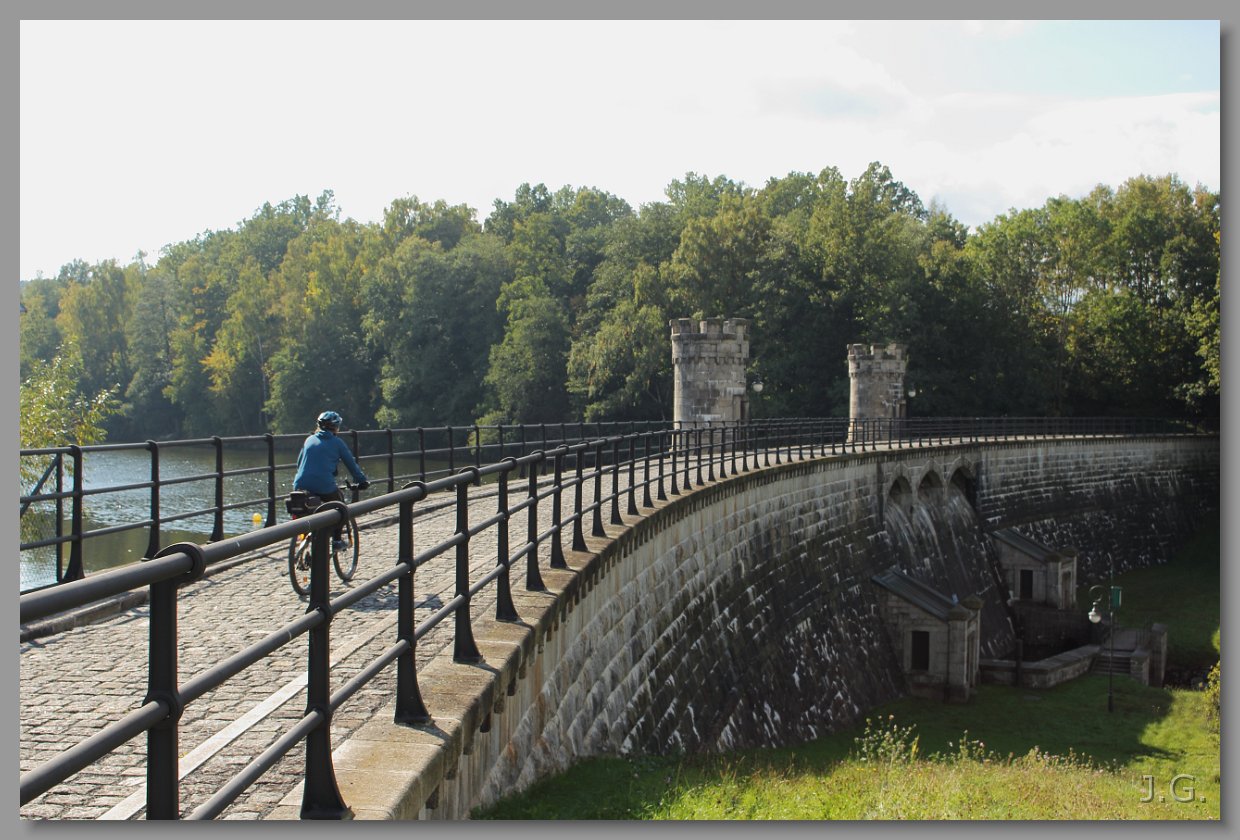 W lesie w sumie też był asfalcik, tyle, że węższy i stromszy - 10 - 13 %. Po pokonaniu podjazdu zaglądamy nad zalew Bedřichov. |