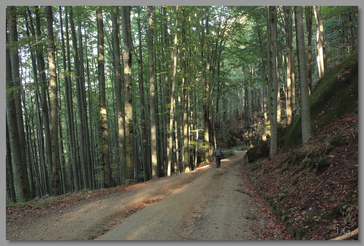 Jedziemy asfaltem do Ferdinandova, a potem wjeżdżamy na piękną leśną drogę (szlak rowerowy 3006). |