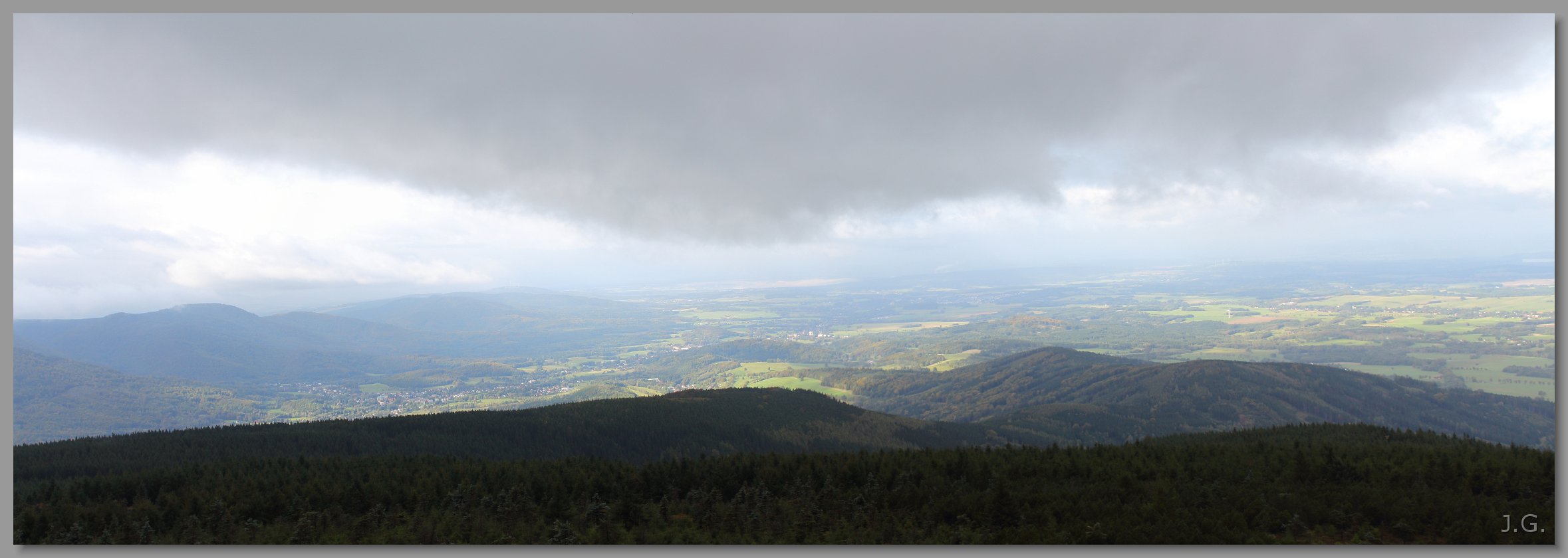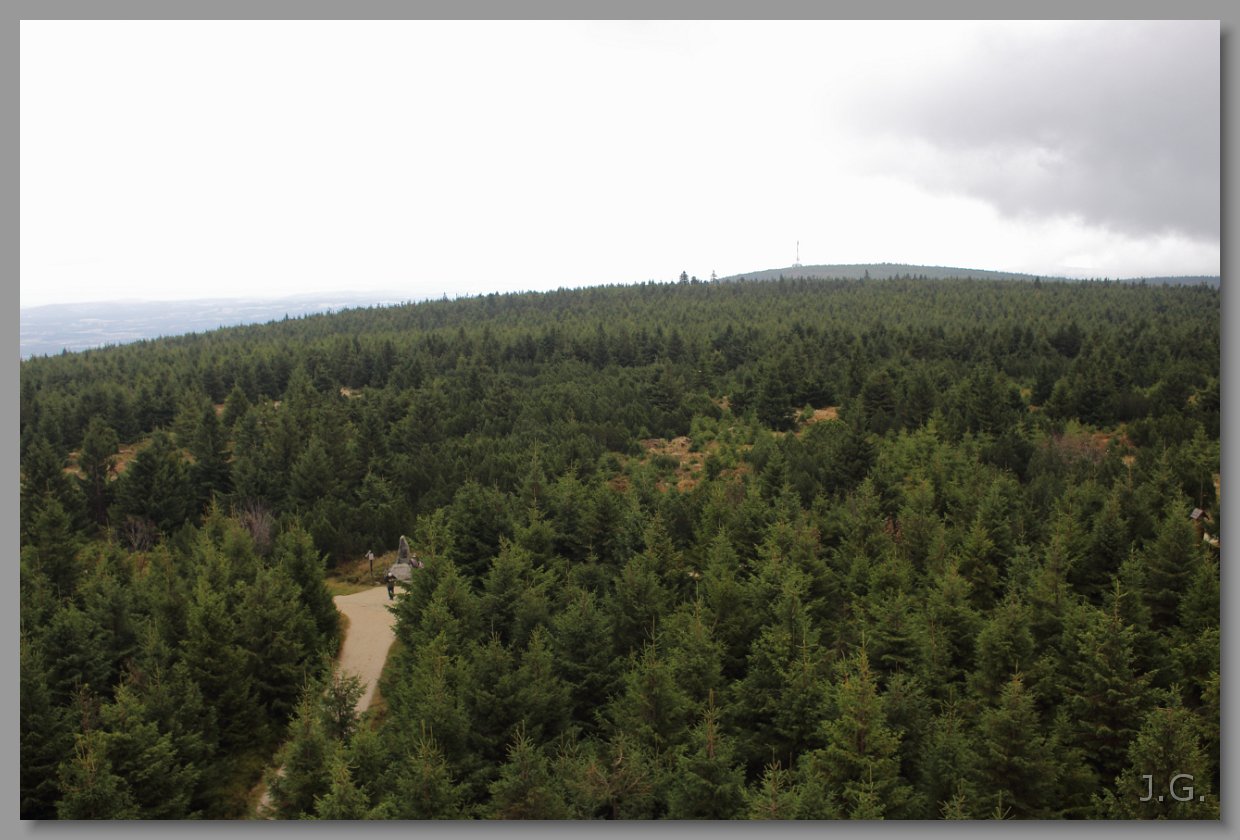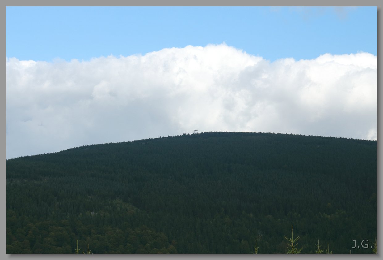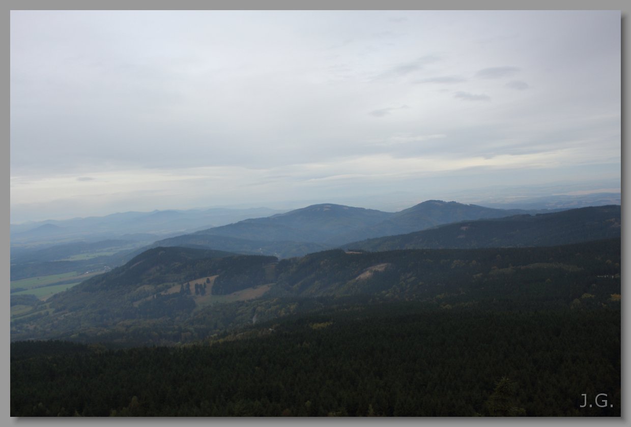 A to widok na Smrk (1124 m) z wieżą widokową. |