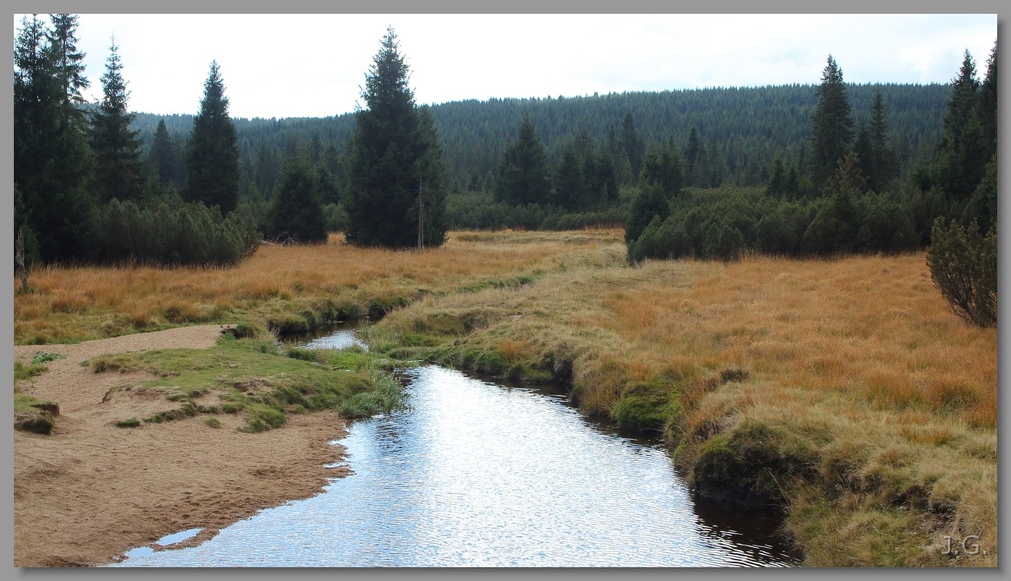 Jedziemy doliną Jizerki podziwiając torfowiska objęte rezerwatem przyrody. |