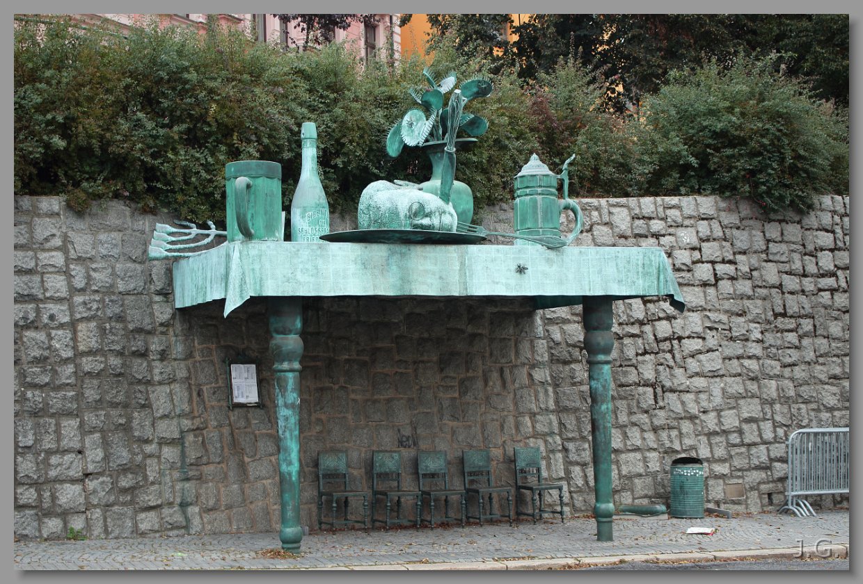 Przystanek autobusowy autorstwa Davida Černého znany jako "Hostina obrů" czyli "Uczta olbrzymów". |