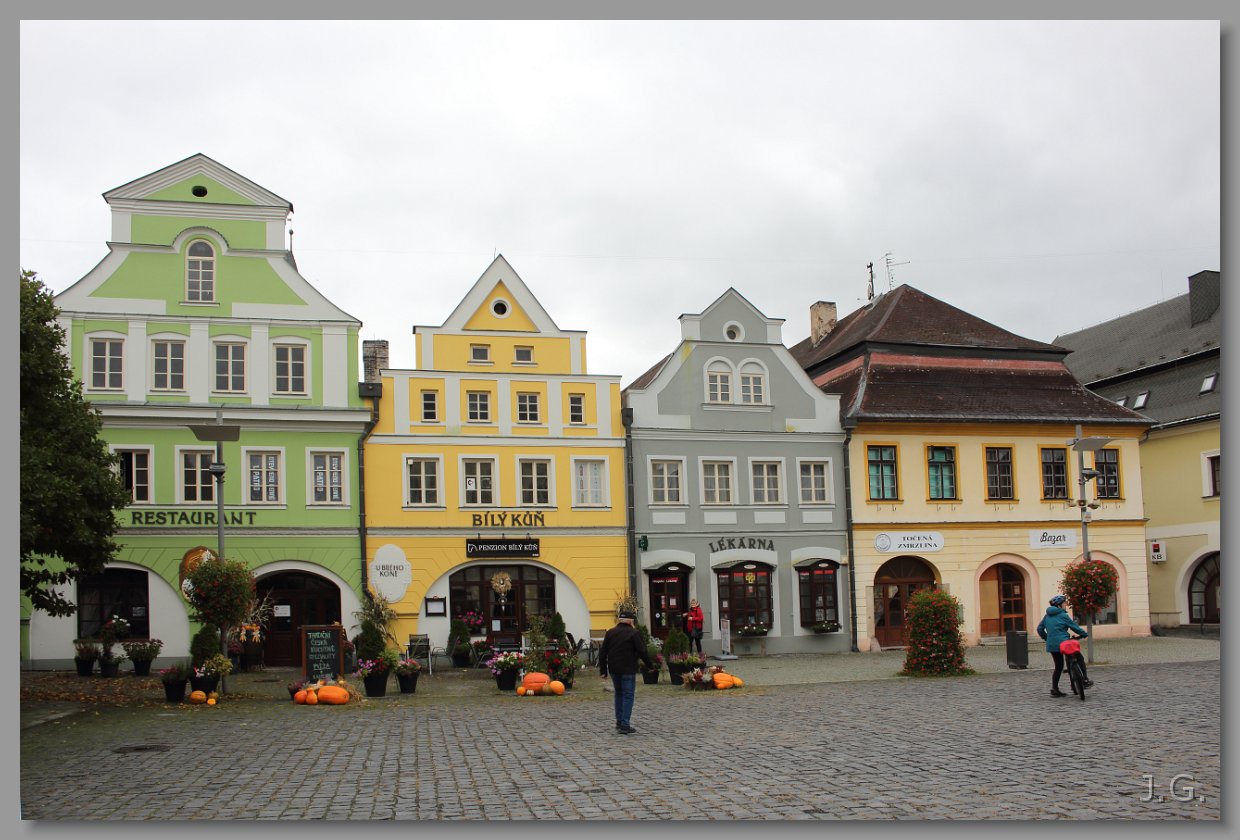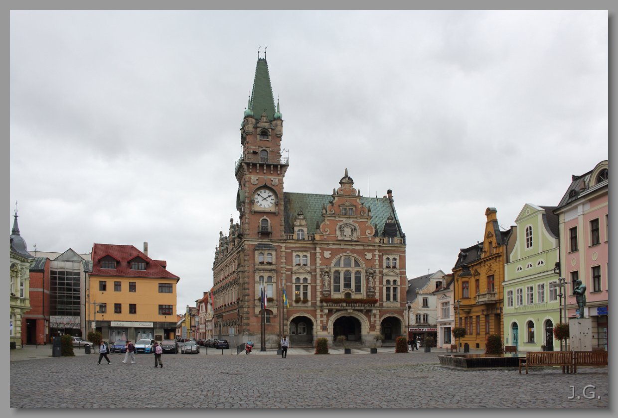 Pierwsze wyjście okazało się nieudane, bo znów zaczęło padać, ale za drugim razem poszło lepiej. Rynek we Frydlantdzie z ratuszem. |