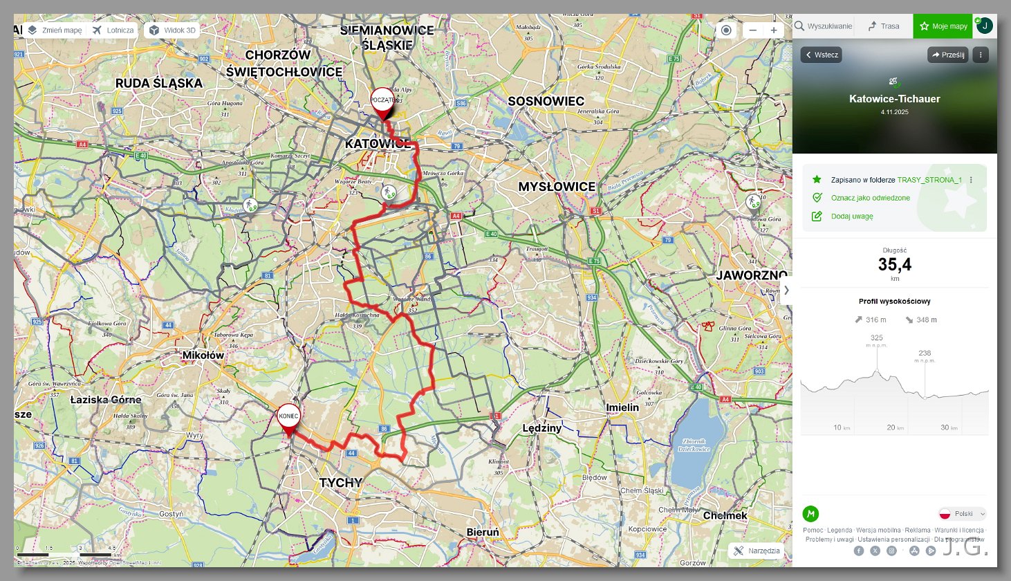Trasa wycieczki. Wracamy pociągiem, bo dzien już krótki. |