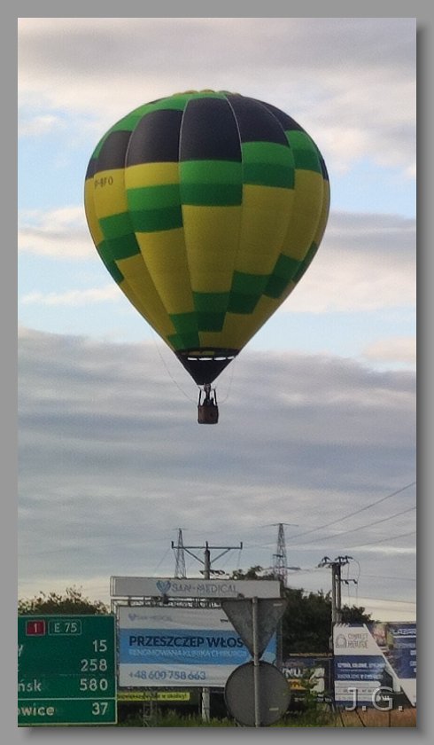 A w drodze powrotnej do Katowic obserwujemy z samochodu jakieś zawody balonowe. Fot Jola. |
