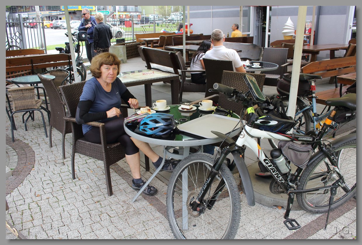 Na razie było trochę asfaltowych ścieżek, trochę szutrów czy wręcz odcinki polnych dróg i dróżek, trochę zwykłych ulic. Teraz wjeżdżamy na deptak w okolicach Węgierskiej Górki. |