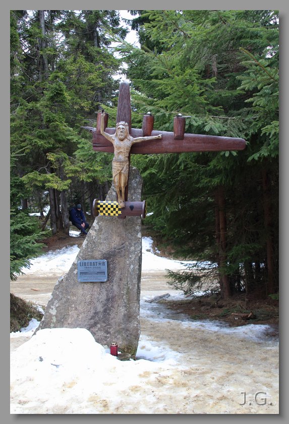 Przy kaplicy na Rusnakowej Polanie postawiono pomnik upamiętniający katastrofę amerykańskiego samolotu Liberator z 1944 r. |