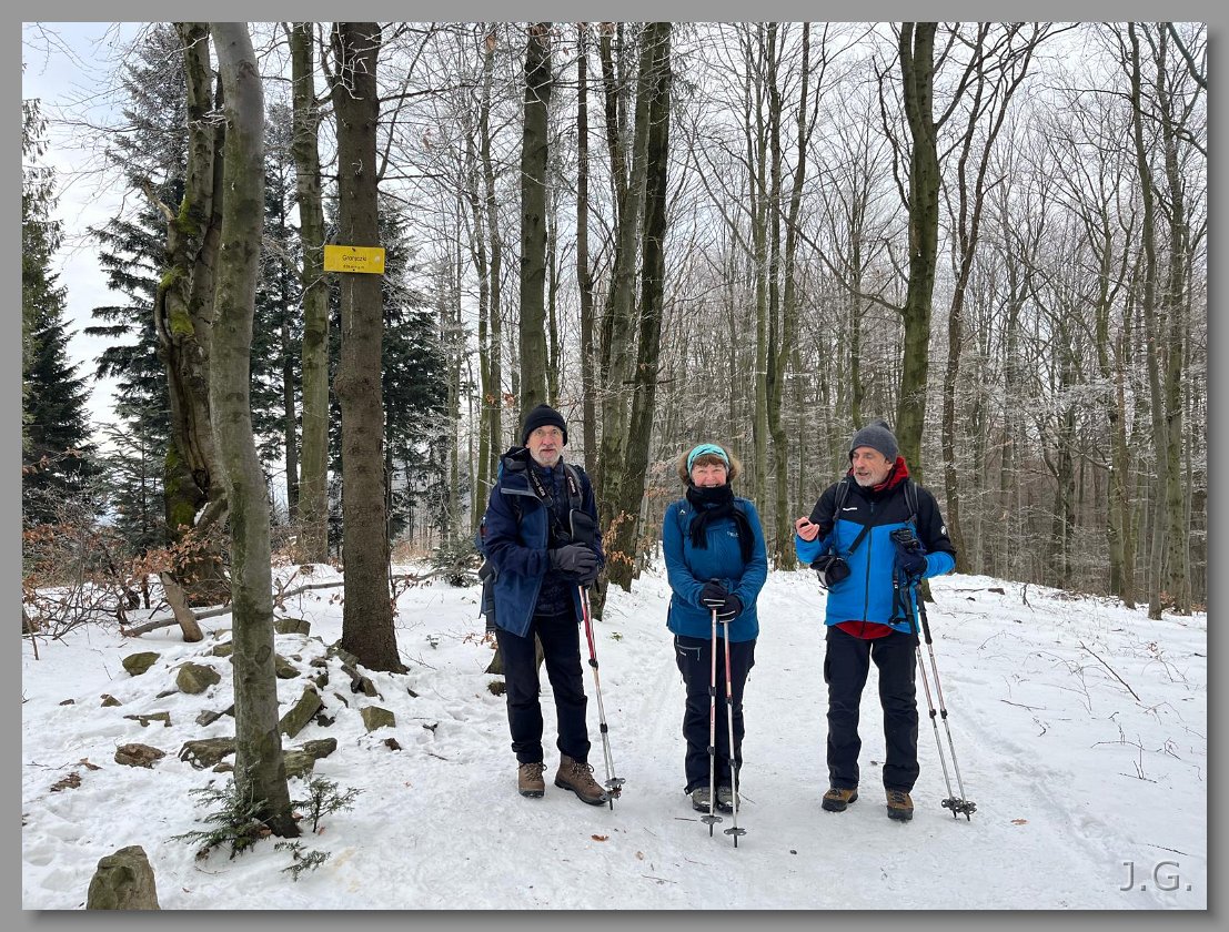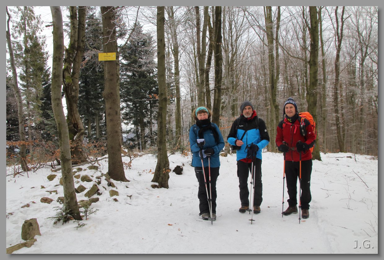 Osiągamy szczyt Groniczków. Jola, Nowy i Sławek. |