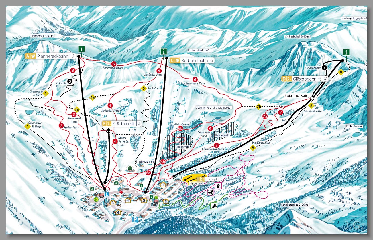 Widok z górnej stacji Riesneralm na czerwoną trasę nr 4. |
