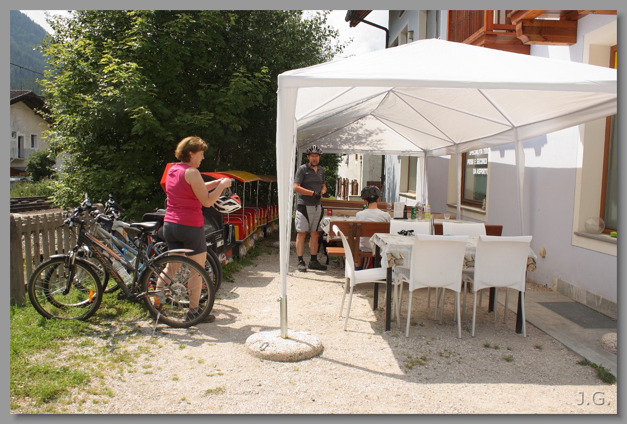 W Dobbiaco zatrzymujemy się na zasłużone piwo, kawę, lody. Połowę trasy (ponad 30) km mamy za sobą. |