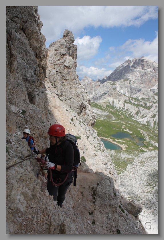 A kolejnego dnia wybieramy się z przeł. Falzarego na Lagazuoi - taką niby ferratą biegnącą głównie w stromym tunelu. |