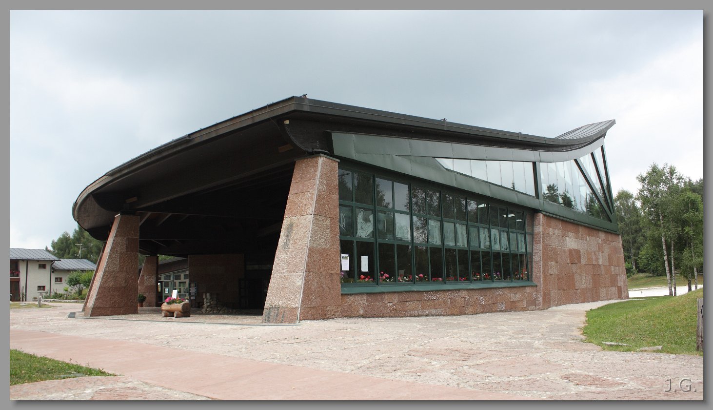 Nieopodal naszego kampingu znajduje się dość nowoczesne pod względem architektoniczym sanktuarium. Mnie przypomina nieco stację kolejki, czy wyciągu. |