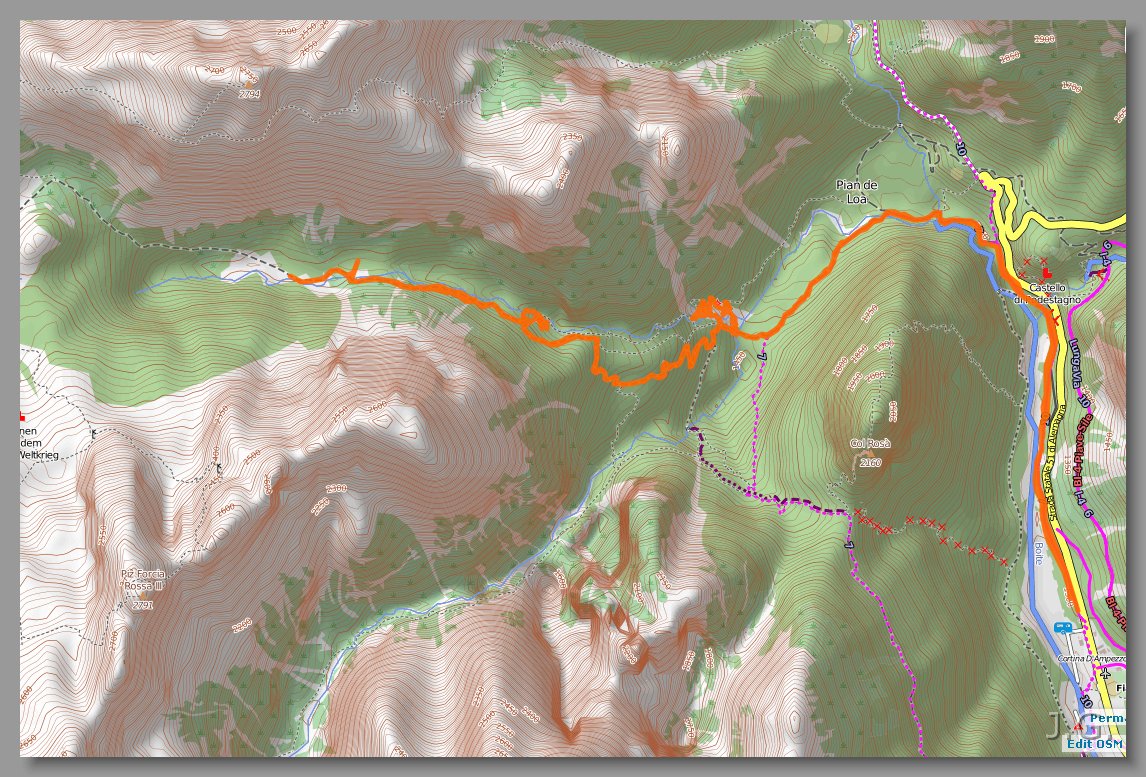 Było w dół - nawet bardzo ;) Ktoś, kto wymyślił zjazd szlakiem 153 musiał być downhilowcem. Na koniec lekki podjazd doliną Fiscalina do schroniska Fondo Valle. |