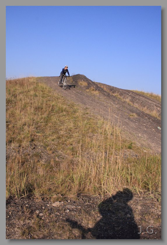 I już na hałdzie. Podobno ma tu powstać "Kalwaria górnicza" - prace chyba już się zaczęły sądząc po rozrytej drodze dojazdowej i stojących pod hałdą ciężarówek i koparek. |