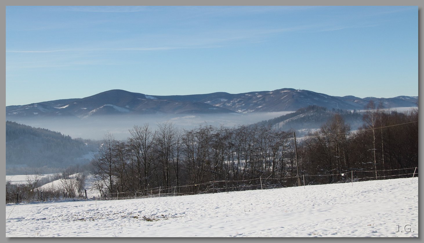 I jeszcze raz Beskid Śląsko-Morawski z najwyższą Lysą Horą (z wieżą). Plan bliżej po prawej Javorovy. |