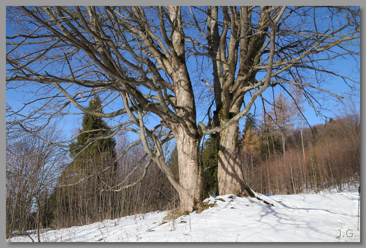I nieco bliższy widoczek na Skrzyczne, Baranią oraz wystające zza nich Babią i Pilsko. |