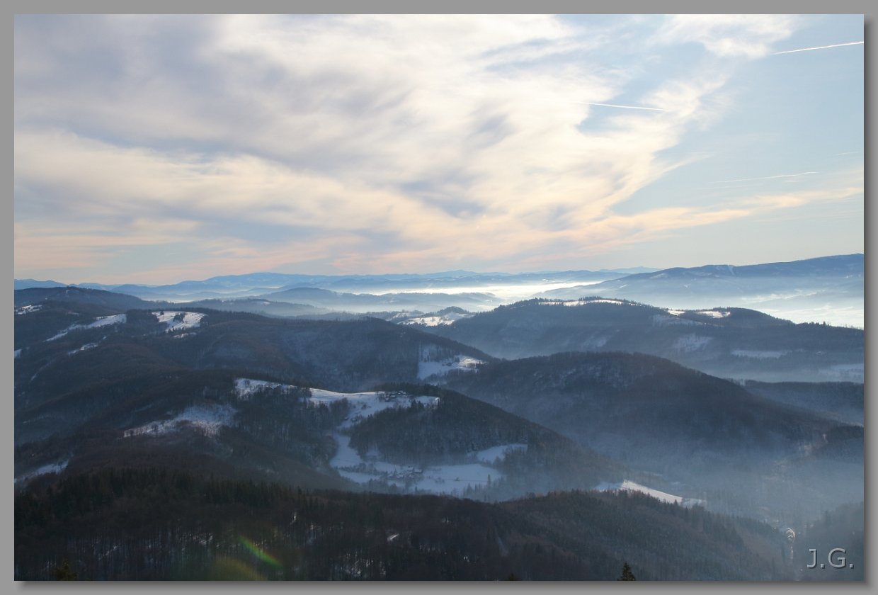 Widać też Jeseniki z Pradziadem po prawej. Odległość 120 km. |