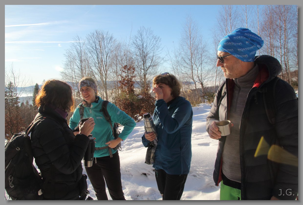 Po 1,5 godz. dochodzimy do czeskiego schroniska. Piotr raczy się serem, a reszta langoszami. Do tego piwo, kofola i czekolada na gorąco. |
