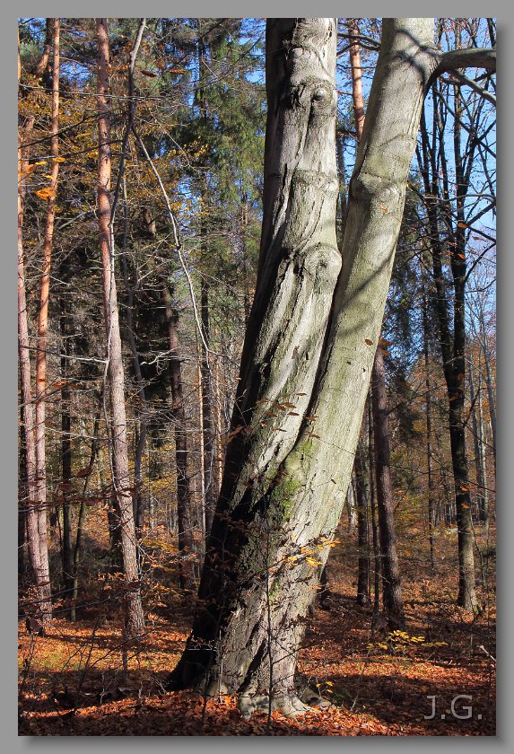 Dąb Tadeusz na Hamerli. W tym miejscu skręcamy w prawo, na łąki w dolinie Mlecznej. |