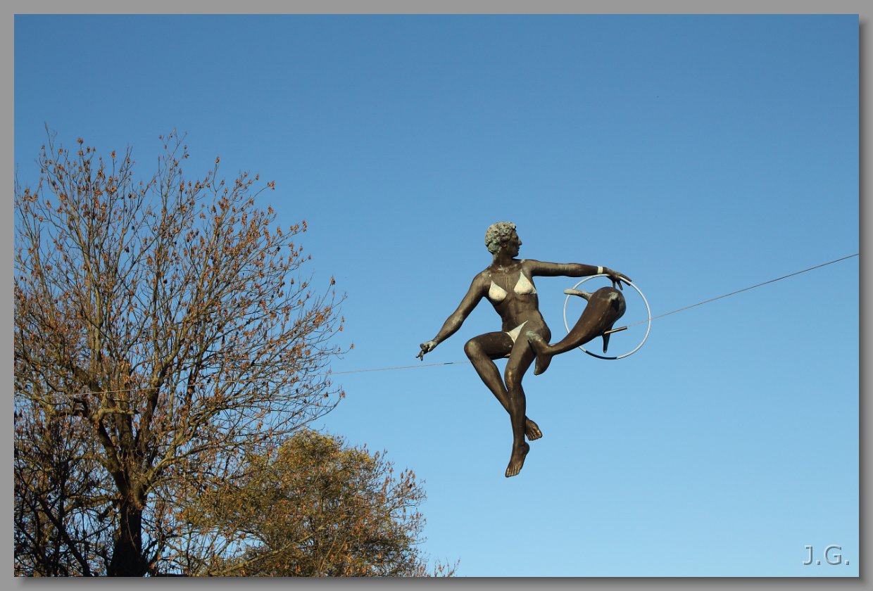 To jedna z balansujących postaci w szwajcarskim mieście Aigle. |