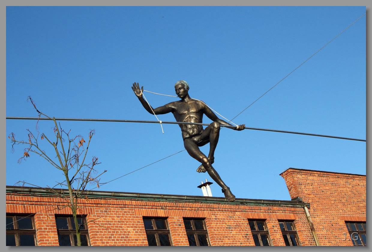 Kilka jego balansujących rzeźb eksponowanych jest na dziedzińcu Browaru Obywatelskiego, w którym mieści się Galeria. |