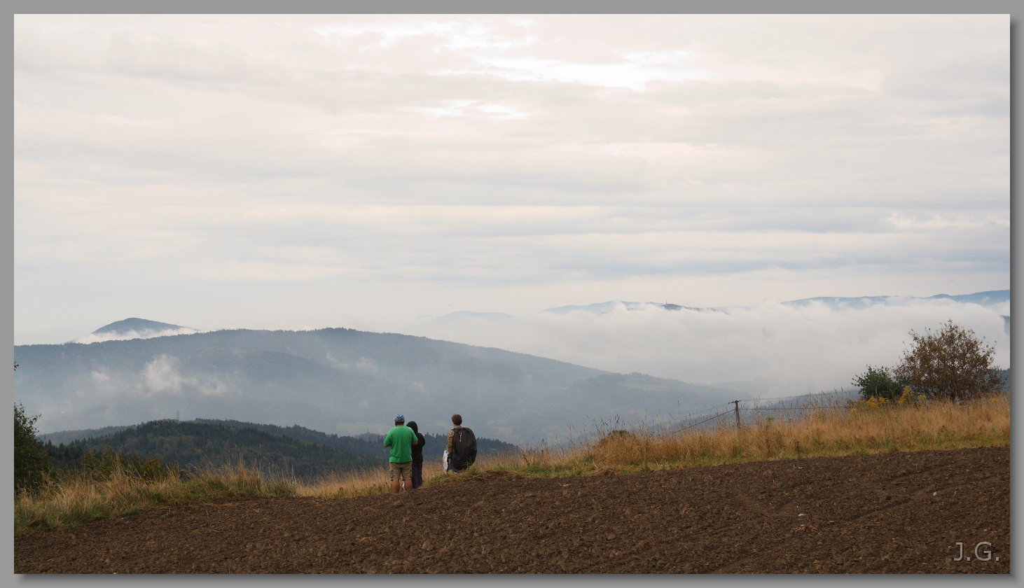 Mimo deszczowej aury idziemy zdobyć najwyższy szczyt zachodniej części pasma Koskową Górę. |