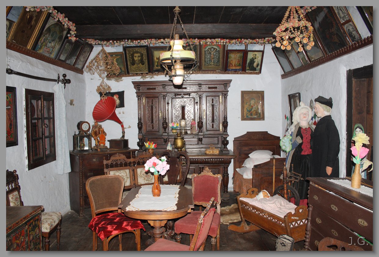 Zwiedzamy skansen. W budynku dawnej karczmy z Krzyszkowic przedstawiono m.in. wnętrze domu mieszczanina dobczyckiego. |