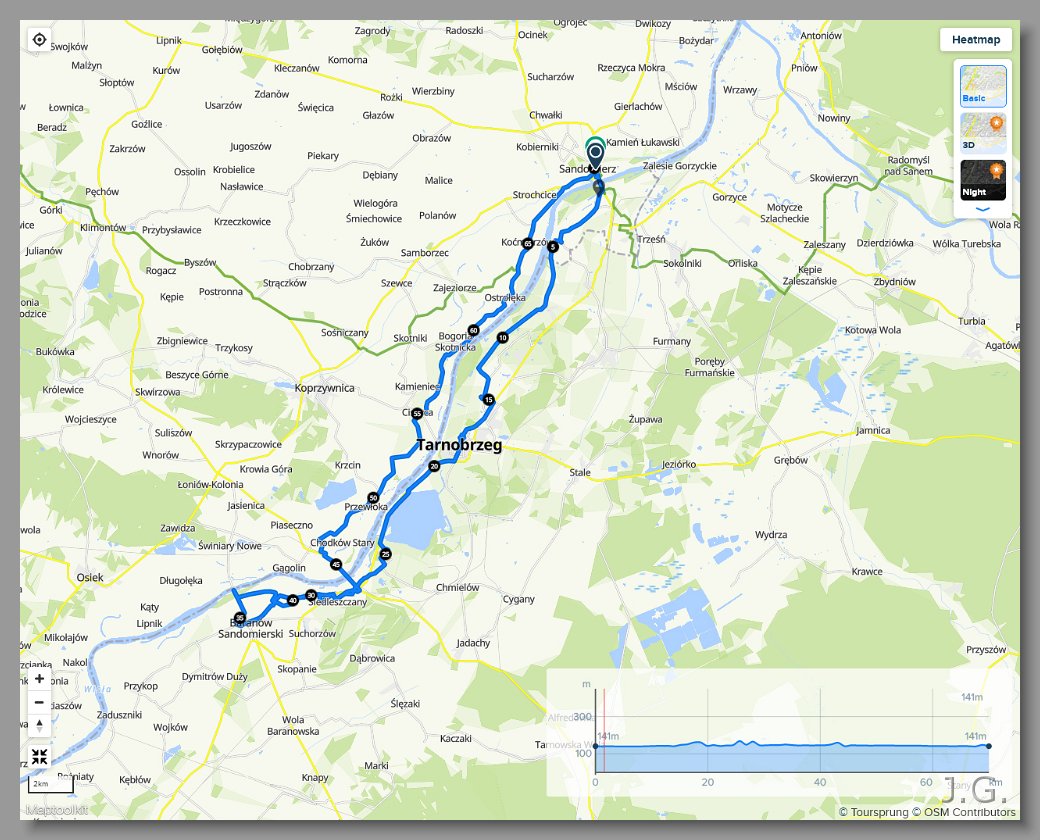 Trasa wycieczki - dzień piąty: ok. 68 km. |
